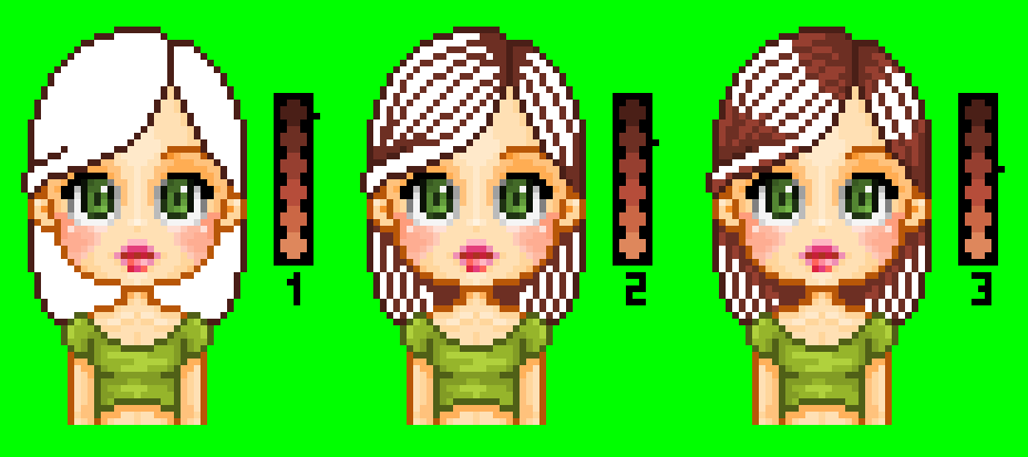 Etape 3 : avec la 3ème couleur, commencez à dégrader un peu les tons des cheveux. restez près des endroits foncés, et plus on ira vers le lumineux, plus on utilisera les couleurs claires de la palette.