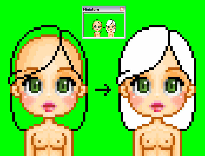 Etape 7 : afin de rendre le shading plus doux, il va falloir adoucir les couleurs du contour des cheveux en tenant compte de la couleur de l'intérieur. En clair, les endroits vraiment lumineux devront être bordés par une couleur légèrement moins foncée que la couleur que nous avions utilisée au départ pour le contour.