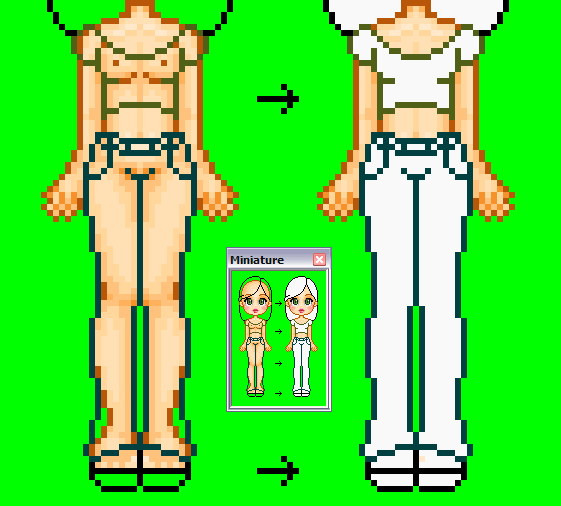Et voilà ! N'oubliez pas d'enlever les palettes sur votre feuille, ma signature, de mettre la votre, de faire le fond en vert fluo pour faire la transparence si ce n'était pas déjà fait, et de passer votre BMP en GIF transparent !